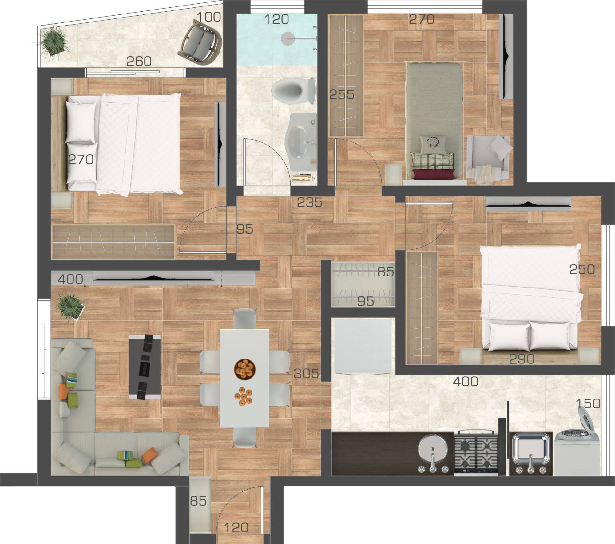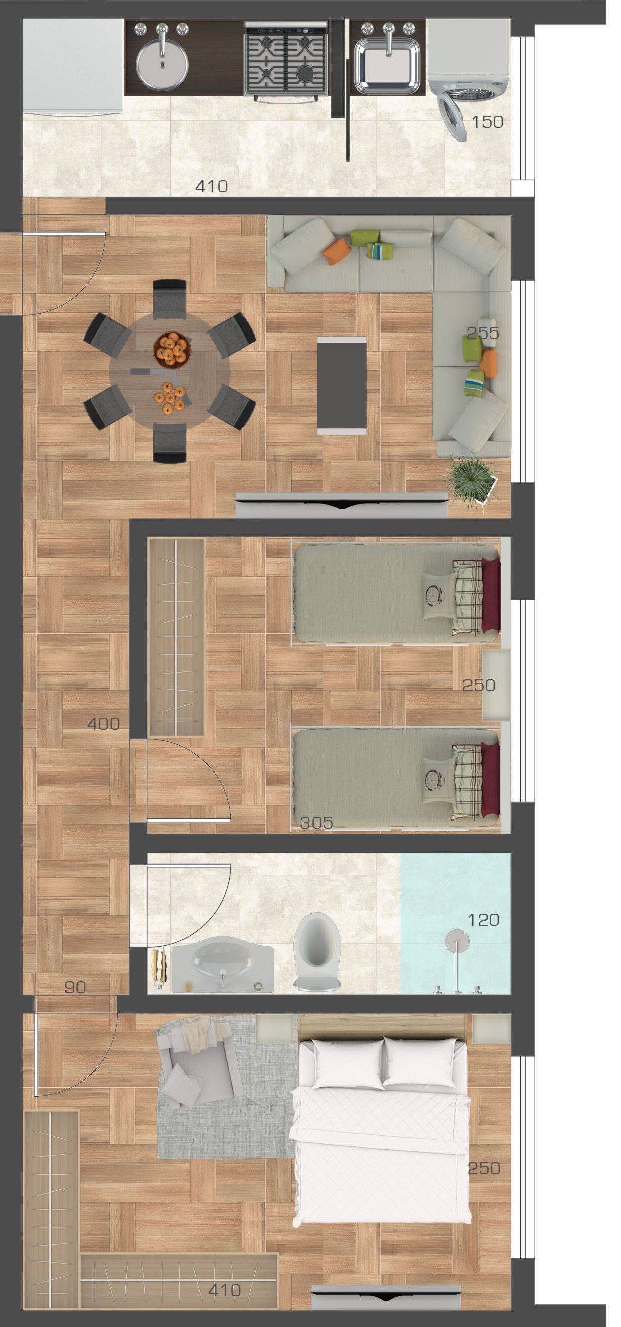 Disponíveis apartamentos de 3 quartos e 2 quartos