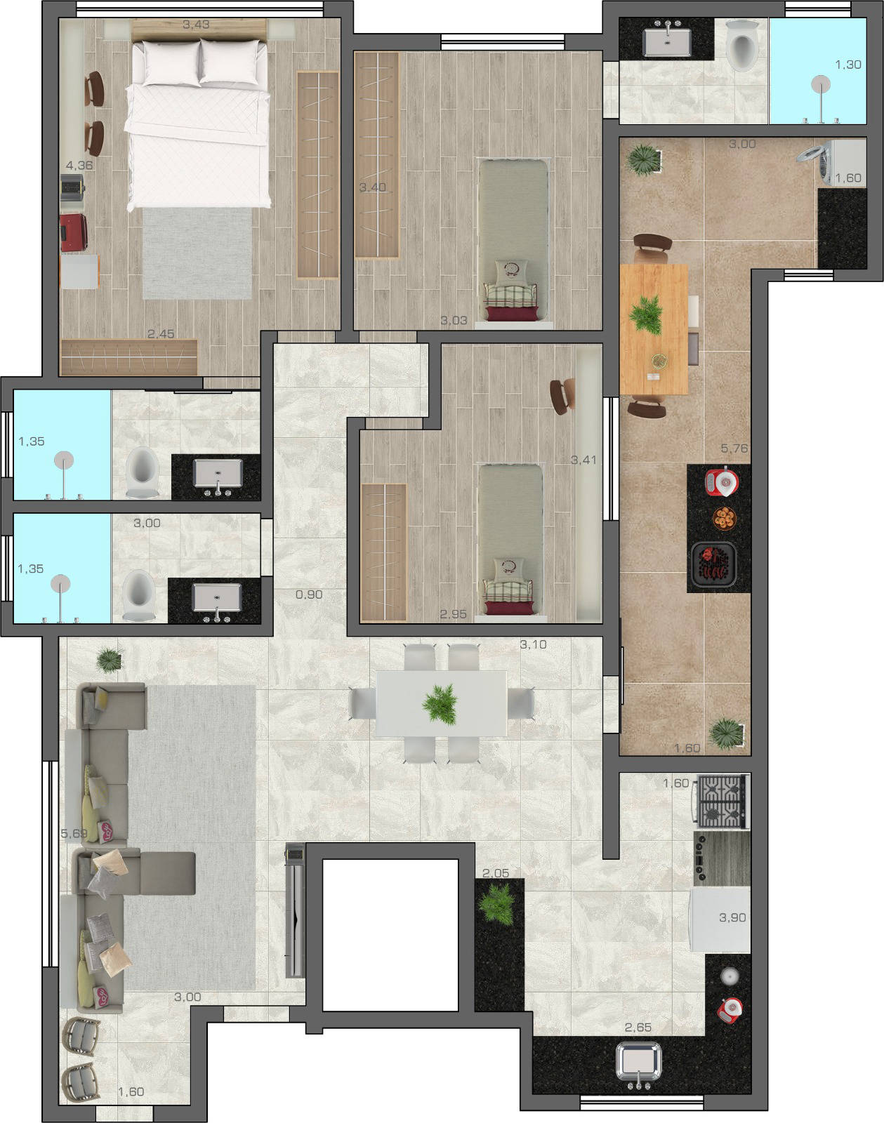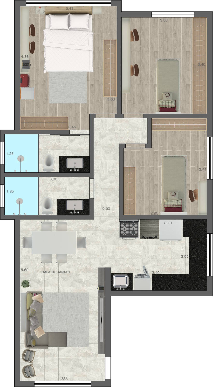 APARTAMENTOS COM 3 QUARTOS COM SUÍTE, COM 2 VAGAS COBERTAS